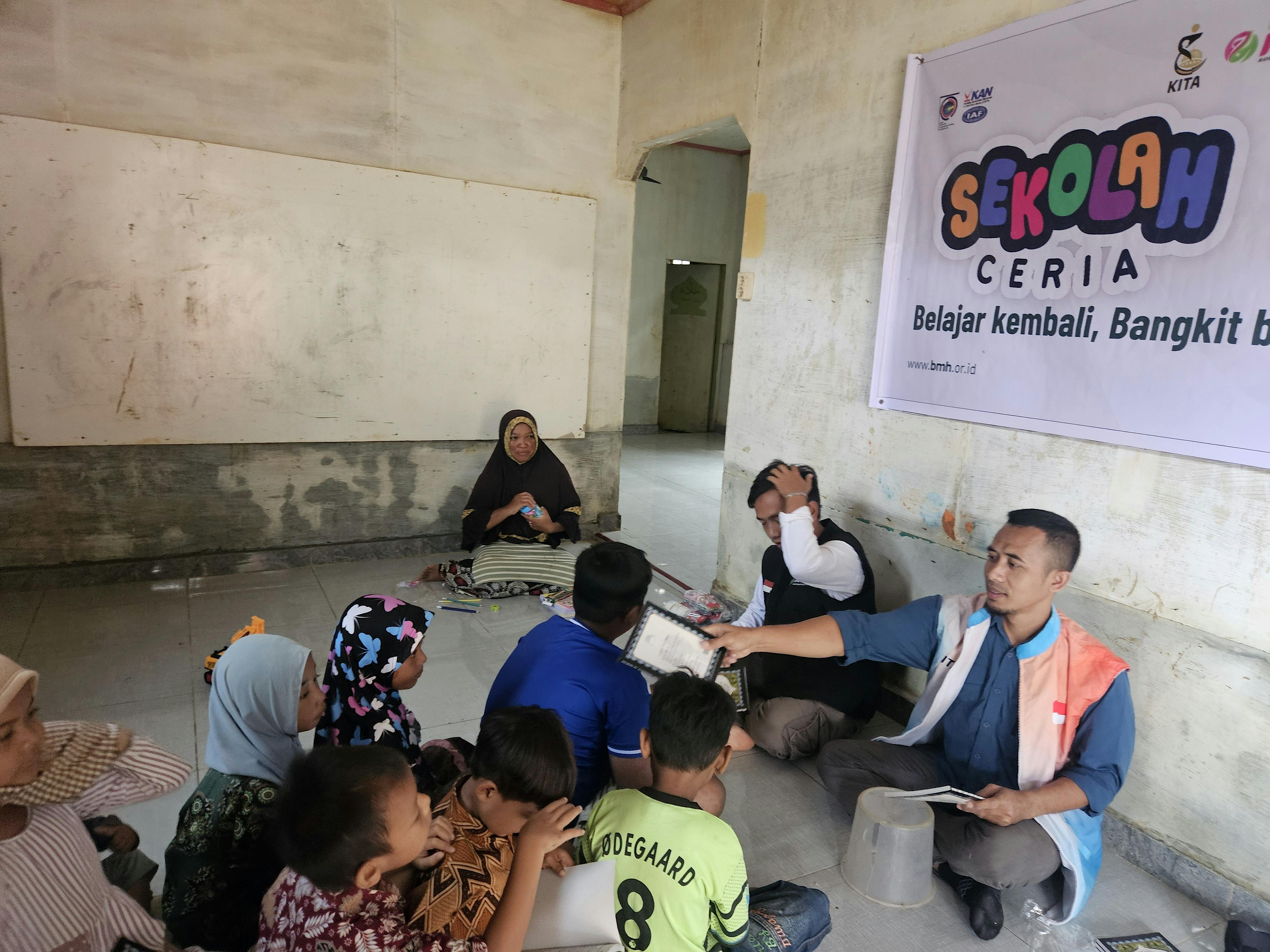 Kemudian seberkas cahaya kebaikan hadir. Suasana mendadak ramai ketika tim BMH datang membawa ratusan mushaf Al-Qur’an baru.